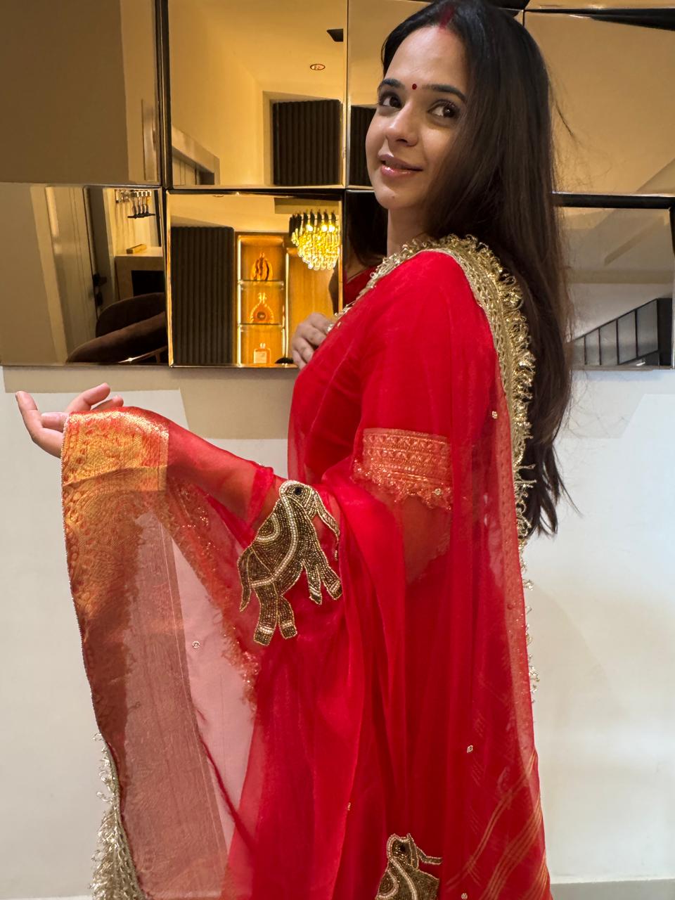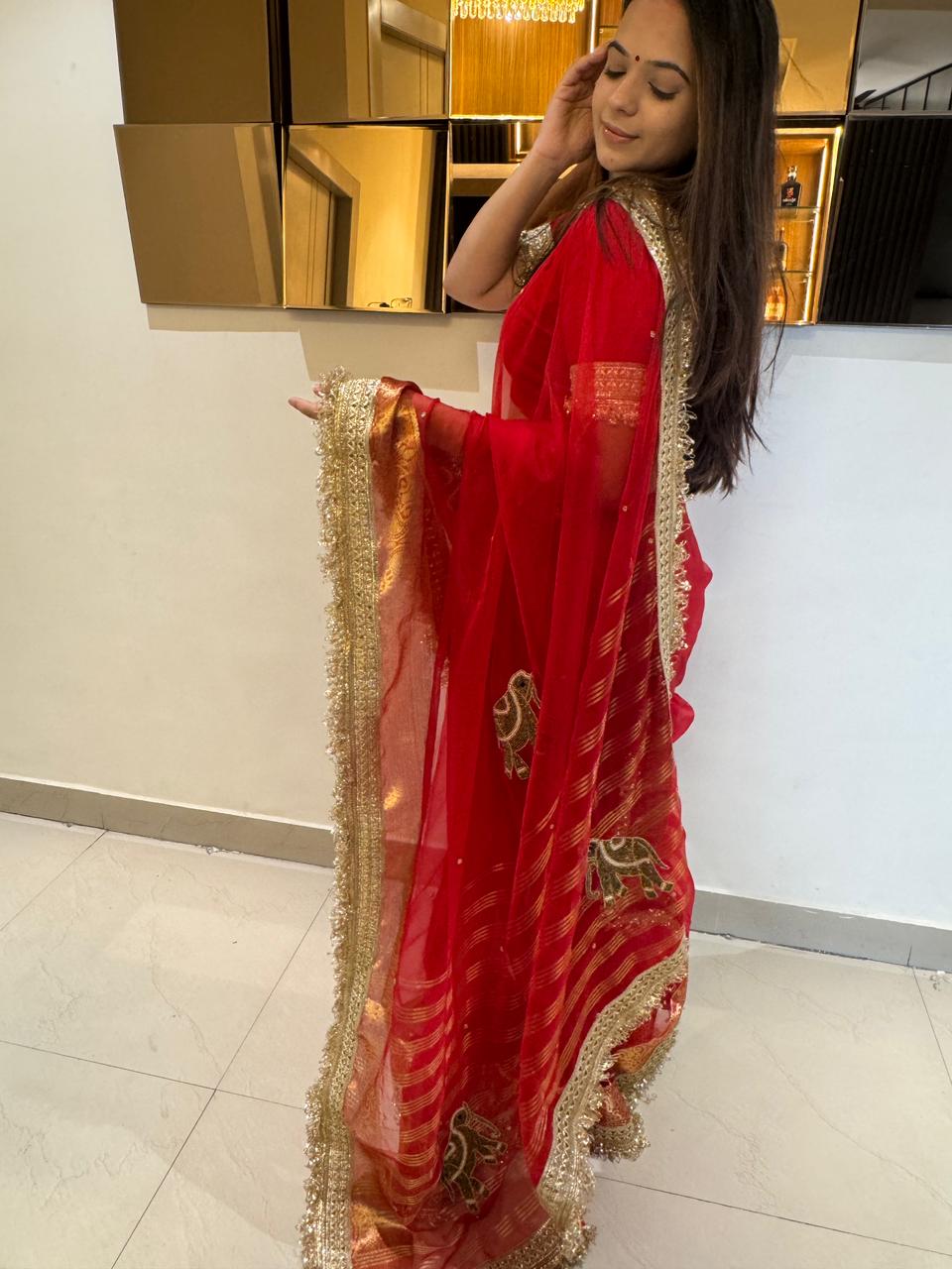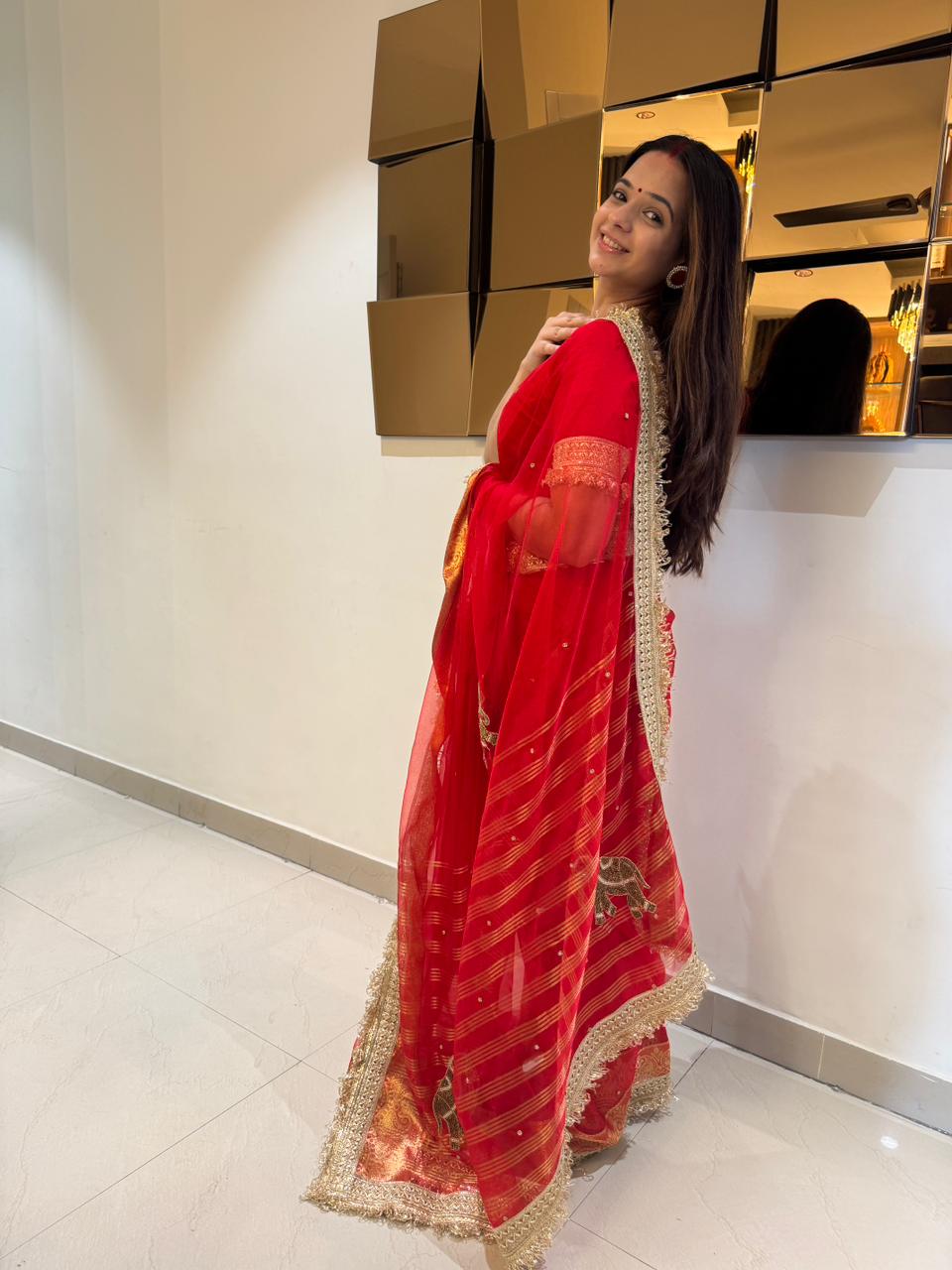The Sindoori banarasi saree is a perfect example of sophistication and craftsmanship, which tells the story of tradition. This is one luxurious fabric that just flows, enveloping the wearer in a fine, ethereal sort of softness. This saree drapes effortlessly, allowing you to create a silhouette that flatters all body types, making you feel confident and radiant. This saree makes any occasion a special one and depicts the art and work that is behind the making of our brand today.